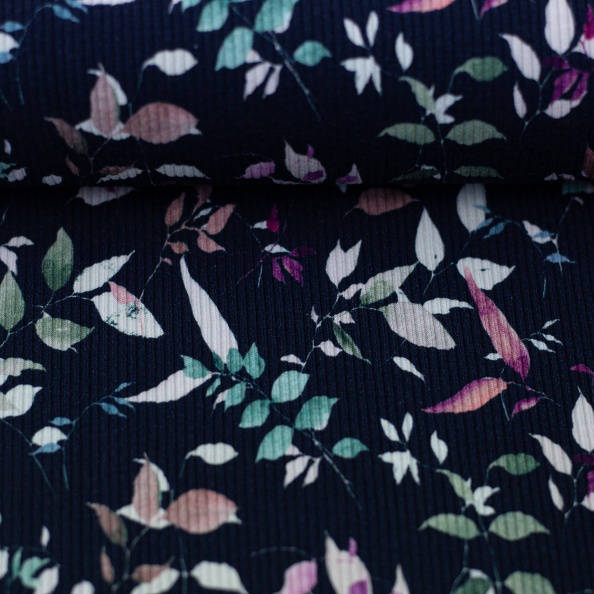 Rippjersey Mia - Swafing Blätter auf blau